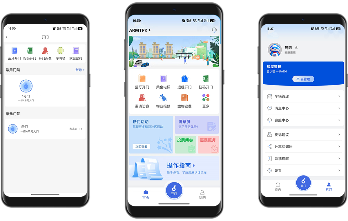 为用户提供高体验、智能化服务。可在线远程开门、物业缴费、工单报修、访客预约、停车缴费等优质服务。