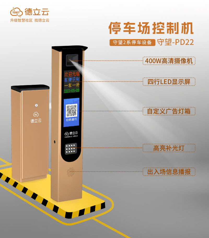 PD22控制机集最新车牌识别技术,语音播报、LED显示屏等功能于一身,采用400万高清摄像机,可以最大限度保证车牌在各种环境状况下的准确识别。192*192mmLED模组4行显示,支持全数字语音同步播报相关信息,同时搭配190*260mm广告灯箱用于自定义广告贴纸,是车辆出入管理的不二之选。