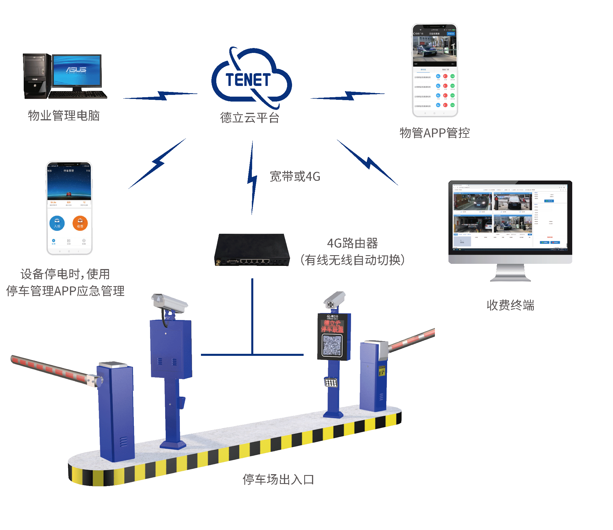 德立云无人值守停车系统,解决物业人员管理及人工成本高的问题。